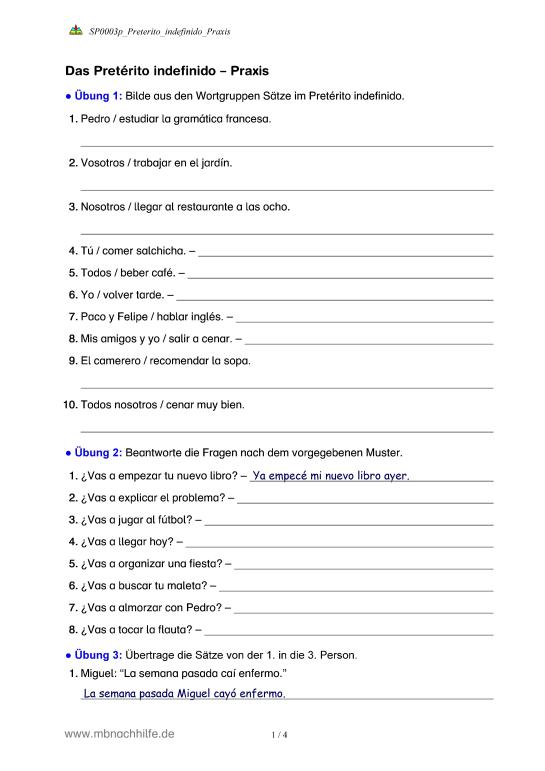 Verben auf -ar (Lückentext: Formen im Indefinido und im Präsens einsetzen)